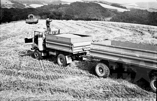 termelőszövetkezet aratás gabona kombájn teherautó pótkocsi Mórágy Tolna megye Magyarország 1988 Bakó JenőFotó részletei