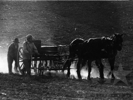 háztáji gazdaság vetés vetőgép ló Bátaszék Tolna megye Magyarország 1986 Bakó JenőFotó részletei