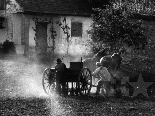 háztáji gazdaság vetés vetőgép ló Bátaszék Tolna megye Magyarország 1986 Bakó JenőFotó részletei