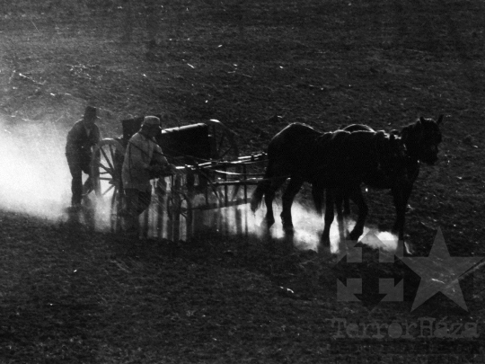 háztáji gazdaság vetés vetőgép ló Bátaszék Tolna megye Magyarország 1986 Bakó JenőFotó részletei