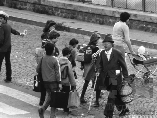 általános iskola diák iskola utcakép forgalom iskolatáska babakocsi Szekszárd Tolna megye Magyarország 1985 Bakó JenőFotó részletei