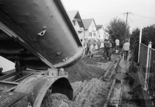 utcakép útépítés teherautó lapát Paks Tolna megye Magyarország 1983 Bakó JenőFotó részletei