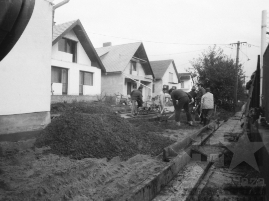 utcakép útépítés lapát Paks Tolna megye Magyarország 1983 Bakó JenőFotó részletei