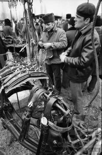nagyvásár áru bőráru lószerszám svájci sapka vásár Szekszárd Tolna megye Magyarország 1973 Bakó JenőFotó részletei