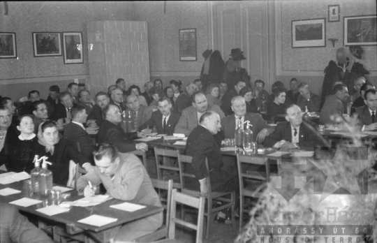 szövetkezet közgyűlés szódásüveg cserépkályha Szekszárd Tolna megye Magyarország 1962 Bakó JenőFotó részletei