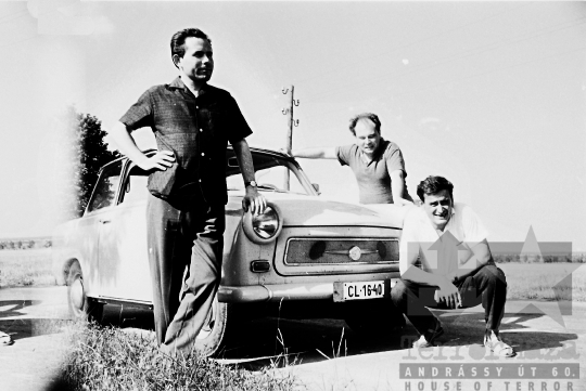 AZONOSÍTÓ: THM-BJ-00717 Férfi beszédet mond - transzparensen felirat: "Munkánk minőségének és hatékonyságának javításával, többletvállalásokkal készülünk a NAGY OKT. SZOC. FORR. 60. évfordulójára". [Az októberi orosz forradalom (kommunista propagandában: nagy októberi szocialista forradalom) 1917. november 6–12. (október 24–30.) között zajlott, amelynek során a bolsevikok a Téli Palota ostroma után az ott székelő Ideiglenes Kormány tagjait letartóztatták, és Lenin vezetésével, akit a Népbiztosok Tanácsa elnökévé választottak, puccsal átvették a hatalmat. Hazánkban ez a nap 1950-től 1989-ig pártállami ünnep volt.] [A szocialista brigádmozgalom szovjet mintára az 1950-es évek végén kezdett kibontakozni Magyarországon, és rendszerváltoztatáskor szűnt meg. Kezdetben csak az ipari üzemekben és gyárakban alakultak meg a brigádok, majd az agráriumban és a hivatali szférában is létrejöttek. A mozgalom jelszava: „Szocialista módon dolgozni, tanulni és élni” volt.] HELYSZÍN: Szekszárd, Tolna megye DÁTUM: 1977 FOTÓS: Bakó Jenő