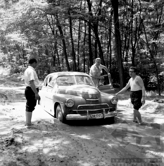 jármű autó Warszawa erdő újságíró sajtó Kanacs-Paks Tolna megye Magyarország 1966 Bakó JenőFotó részletei