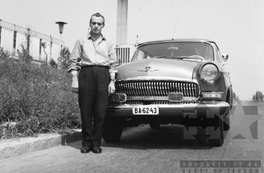 AZONOSÍTÓ: THM-BJ-00717 Férfi beszédet mond - transzparensen felirat: "Munkánk minőségének és hatékonyságának javításával, többletvállalásokkal készülünk a NAGY OKT. SZOC. FORR. 60. évfordulójára". [Az októberi orosz forradalom (kommunista propagandában: nagy októberi szocialista forradalom) 1917. november 6–12. (október 24–30.) között zajlott, amelynek során a bolsevikok a Téli Palota ostroma után az ott székelő Ideiglenes Kormány tagjait letartóztatták, és Lenin vezetésével, akit a Népbiztosok Tanácsa elnökévé választottak, puccsal átvették a hatalmat. Hazánkban ez a nap 1950-től 1989-ig pártállami ünnep volt.] [A szocialista brigádmozgalom szovjet mintára az 1950-es évek végén kezdett kibontakozni Magyarországon, és rendszerváltoztatáskor szűnt meg. Kezdetben csak az ipari üzemekben és gyárakban alakultak meg a brigádok, majd az agráriumban és a hivatali szférában is létrejöttek. A mozgalom jelszava: „Szocialista módon dolgozni, tanulni és élni” volt.] HELYSZÍN: Szekszárd, Tolna megye DÁTUM: 1977 FOTÓS: Bakó Jenő