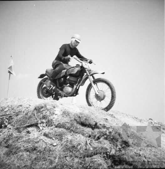 motor verseny terep rajtszám sportoló bukósisak zászló Őcsény Tolna megye Magyarország 1966 Bakó Jenő