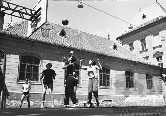 kosárlabda edzés edzőtábor játékos mez labda kosárpalánk pálya Szekszárd Tolna megye Magyarország 1967 Bakó JenőFotó részletei