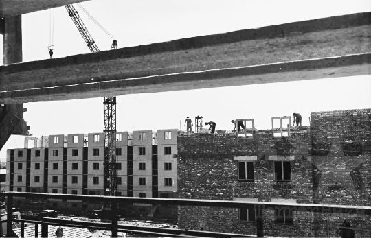 AZONOSÍTÓ: THM-BJ-00717 Férfi beszédet mond - transzparensen felirat: "Munkánk minőségének és hatékonyságának javításával, többletvállalásokkal készülünk a NAGY OKT. SZOC. FORR. 60. évfordulójára". [Az októberi orosz forradalom (kommunista propagandában: nagy októberi szocialista forradalom) 1917. november 6–12. (október 24–30.) között zajlott, amelynek során a bolsevikok a Téli Palota ostroma után az ott székelő Ideiglenes Kormány tagjait letartóztatták, és Lenin vezetésével, akit a Népbiztosok Tanácsa elnökévé választottak, puccsal átvették a hatalmat. Hazánkban ez a nap 1950-től 1989-ig pártállami ünnep volt.] [A szocialista brigádmozgalom szovjet mintára az 1950-es évek végén kezdett kibontakozni Magyarországon, és rendszerváltoztatáskor szűnt meg. Kezdetben csak az ipari üzemekben és gyárakban alakultak meg a brigádok, majd az agráriumban és a hivatali szférában is létrejöttek. A mozgalom jelszava: „Szocialista módon dolgozni, tanulni és élni” volt.] HELYSZÍN: Szekszárd, Tolna megye DÁTUM: 1977 FOTÓS: Bakó Jenő