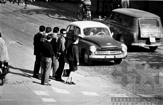 AZONOSÍTÓ: THM-BJ-00717 Férfi beszédet mond - transzparensen felirat: "Munkánk minőségének és hatékonyságának javításával, többletvállalásokkal készülünk a NAGY OKT. SZOC. FORR. 60. évfordulójára". [Az októberi orosz forradalom (kommunista propagandában: nagy októberi szocialista forradalom) 1917. november 6–12. (október 24–30.) között zajlott, amelynek során a bolsevikok a Téli Palota ostroma után az ott székelő Ideiglenes Kormány tagjait letartóztatták, és Lenin vezetésével, akit a Népbiztosok Tanácsa elnökévé választottak, puccsal átvették a hatalmat. Hazánkban ez a nap 1950-től 1989-ig pártállami ünnep volt.] [A szocialista brigádmozgalom szovjet mintára az 1950-es évek végén kezdett kibontakozni Magyarországon, és rendszerváltoztatáskor szűnt meg. Kezdetben csak az ipari üzemekben és gyárakban alakultak meg a brigádok, majd az agráriumban és a hivatali szférában is létrejöttek. A mozgalom jelszava: „Szocialista módon dolgozni, tanulni és élni” volt.] HELYSZÍN: Szekszárd, Tolna megye DÁTUM: 1977 FOTÓS: Bakó Jenő