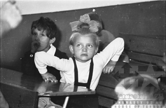 diák iskola általános iskola tanterem ünneplő iskolapad Szekszárd Tolna megye Magyarország 1968 Bakó JenőFotó részletei