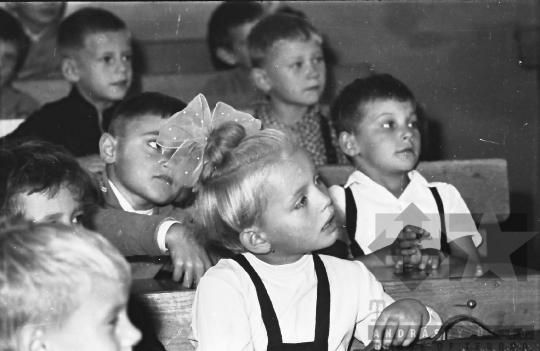 diák iskola általános iskola tanterem ünneplő iskolapad Szekszárd Tolna megye Magyarország 1968 Bakó JenőFotó részletei
