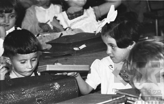 diák iskola általános iskola tanterem ünneplő iskolapad Szekszárd Tolna megye Magyarország 1968 Bakó JenőFotó részletei