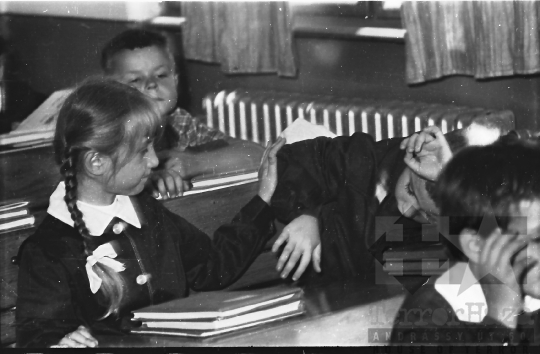 diák iskola általános iskola tanterem ünneplő iskolapad Szekszárd Tolna megye Magyarország 1968 Bakó JenőFotó részletei