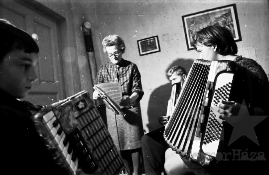 diák iskola zeneiskola tanterem tangóharmonika hangszer Tolna Tolna megye Magyarország 1968 Bakó JenőFotó részletei