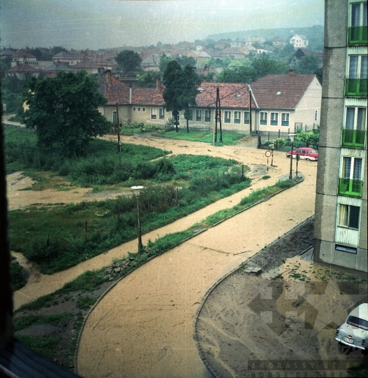 utcakép panelház földút autó családi ház lakótelep panel Szekszárd Tolna megye Magyarország 1973 Bakó JenőFotó részletei