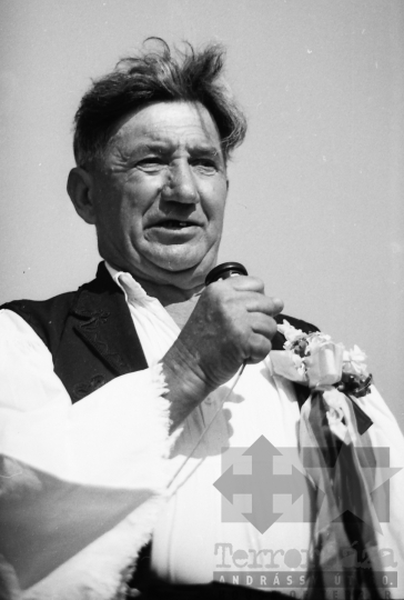 ünnepség lakodalom mikrofon portré néprajz népviselet Decs Tolna megye Magyarország 1976 Bakó JenőFotó részletei