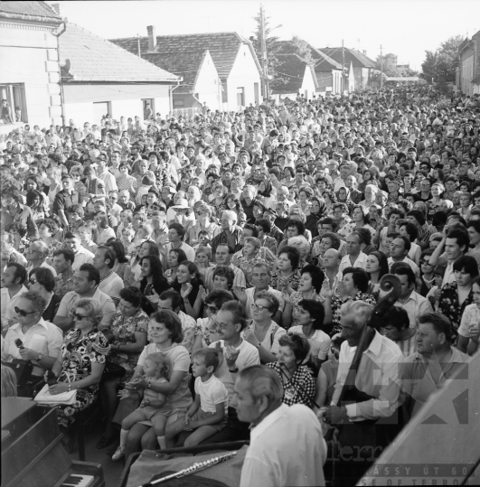 AZONOSÍTÓ: THM-BJ-00716 A rendezvény résztvevői. [A szocialista brigádmozgalom szovjet mintára az 1950-es évek végén kezdett kibontakozni Magyarországon, és rendszerváltoztatáskor szűnt meg. Kezdetben csak az ipari üzemekben és gyárakban alakultak meg a brigádok, majd az agráriumban és a hivatali szférában is létrejöttek. A mozgalom jelszava: „Szocialista módon dolgozni, tanulni és élni” volt.] HELYSZÍN: Szekszárd, Tolna megye DÁTUM: 1977 FOTÓS: Bakó Jenő