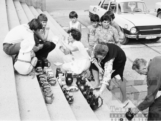 mázas edény gyertyatartó korsó autó Skoda rendszám kerámia vásár Miskolc Borsod-Abaúj-Zemplén megye Magyarország 1979 Bakó JenőFotó részletei