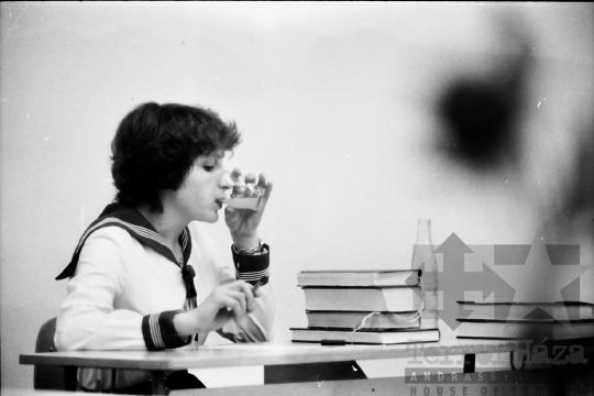 gimnázium érettségi diák iskola szóbeli matrózblúz vizsga Dombóvár Tolna megye Magyarország 1981 Bakó JenőFotó részletei