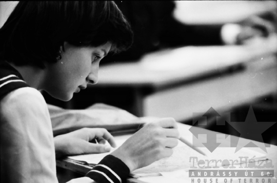 gimnázium érettségi diák iskola szóbeli matrózblúz vizsga Dombóvár Tolna megye Magyarország 1981 Bakó JenőFotó részletei