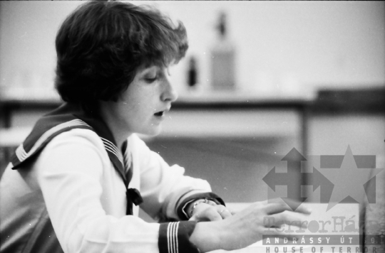 gimnázium érettségi diák iskola szóbeli matrózblúz vizsga Dombóvár Tolna megye Magyarország 1981 Bakó JenőFotó részletei