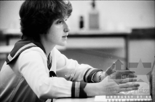 gimnázium érettségi diák iskola szóbeli matrózblúz vizsga Dombóvár Tolna megye Magyarország 1981 Bakó JenőFotó részletei