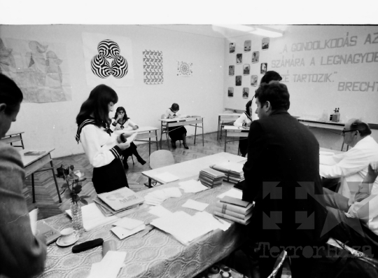 gimnázium érettségi diák iskola szóbeli matrózblúz vizsga Dombóvár Tolna megye Magyarország 1981 Bakó JenőFotó részletei