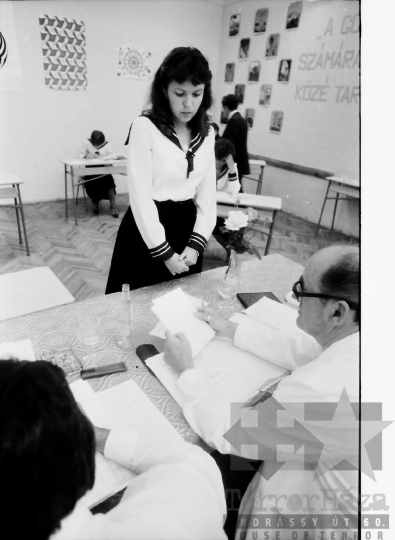 gimnázium érettségi diák iskola szóbeli matrózblúz vizsga Dombóvár Tolna megye Magyarország 1981 Bakó JenőFotó részletei