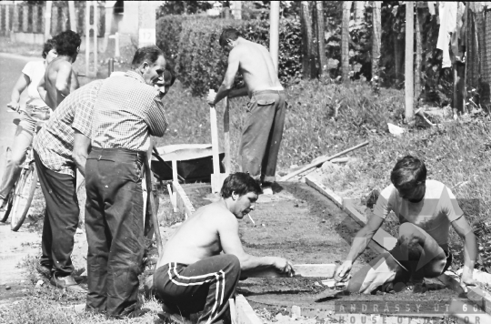 építkezés lapát buszmegálló Mórágy Tolna megye Magyarország 1982 Bakó JenőFotó részletei