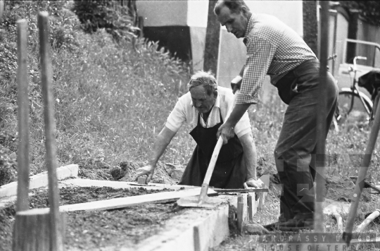 építkezés lapát kötény buszmegálló Mórágy Tolna megye Magyarország 1982 Bakó JenőFotó részletei