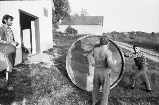 szüret hordó présház svájcisapka Mórágy Tolna megye Magyarország 1983 Bakó JenőFotó részletei