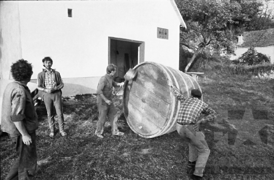 szüret hordó présház svájcisapka Mórágy Tolna megye Magyarország 1983 Bakó JenőFotó részletei