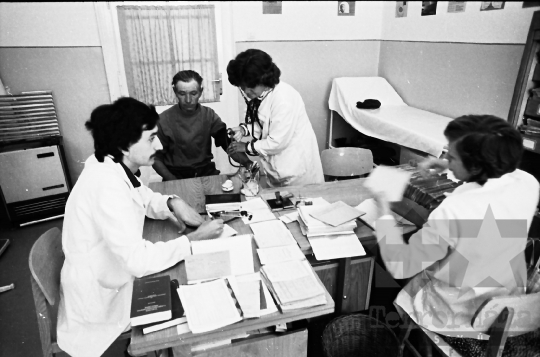 házi orvos rendelő egészségügy ápolónő vérnyomásmérés munkahelyi élet Mórágy Tolna megye 1984 Bakó Jenő MagyarországFotó részletei