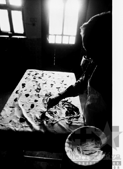 AZONOSÍTÓ: THM-BJ-00468 Férfi asszonyokat köszönt virággal a gyár bejáratánál. [A nemzetközi nőnap szovjet mintára Magyarországon 1948-tól egészen a rendszerváltoztatásig kötelező ünnepnap volt március 8-án.] [A Tolnai Selyemfonógyárat 1900-ben Bezerédj Pál alapította. A gyár fő profilja a természetes selyemszálak gyártása volt. 1948-ban államosították, majd az 1955-ben megalakított Magyar Selyemipar Vállalathoz csatolták. 1970-ben megszűnt a selyemfonás, helyette szintetikus szövetek gyártása folyt. 1991-ben privatizálták.] HELYSZÍN: Tolna, Tolna megye DÁTUM: 1977 FOTÓS: Bakó Jenő