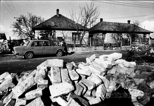 utcakép családi ház tégla autó Lada Szekszárd Tolna megye Magyarország 1984 Bakó JenőFotó részletei