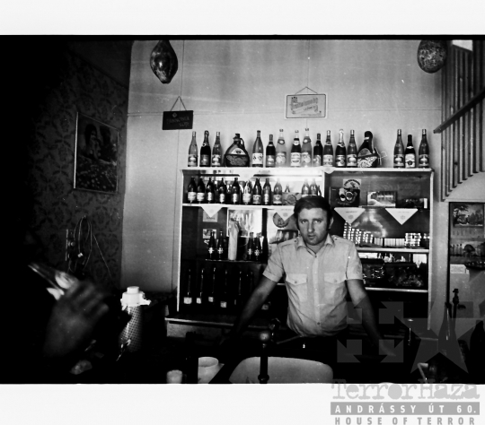 kocsma italpult Pepsi Gyöngy üdítő pezsgő sör üveg termosz kulacs cigaretta Mórágy Tolna megye Magyarország 1985 Bakó JenőFotó részletei