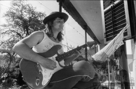 zenekar gitár kalap fiatalság Mórágy Tolna megye Magyarország 1989 Bakó JenőFotó részletei
