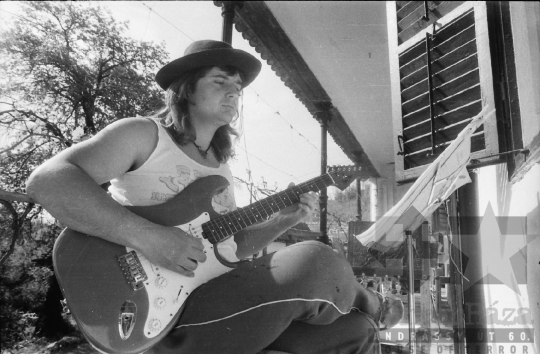 zenekar gitár kalap fiatalság Mórágy Tolna megye Magyarország 1989 Bakó JenőFotó részletei