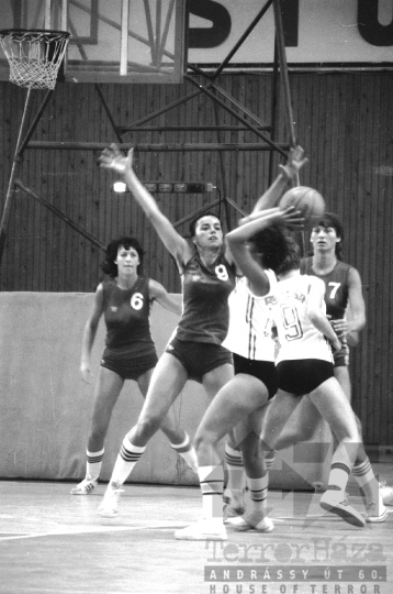 kosárlabda kupa meccs mérkőzés játékos mez pálya labda kosárpalánk Szekszárd Tolna megye Magyarország 1981 Bakó JenőFotó részletei