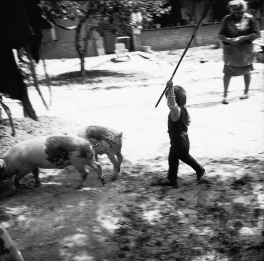sertés állattenyésztés gyerek család háztáji gazdaság Szekszárd Tolna megye Magyarország 1972 Bakó JenőFotó részletei