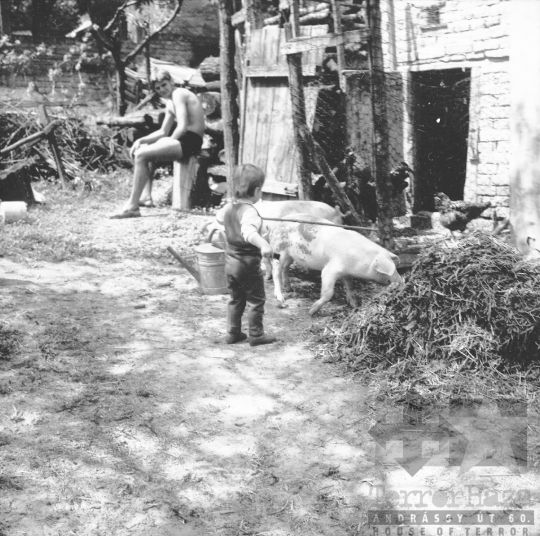 sertés állattenyésztés gyerek család háztáji gazdaság Szekszárd Tolna megye Magyarország 1972 Bakó JenőFotó részletei