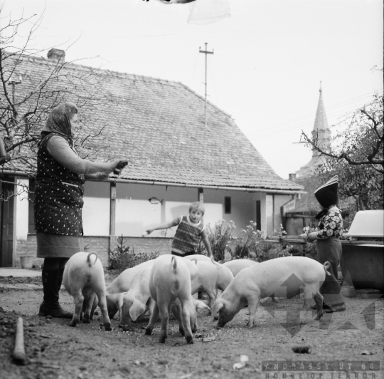 sertés állattenyésztés gyerek család háztáji gazdaság Szekszárd Tolna megye Magyarország 1972 Bakó JenőFotó részletei