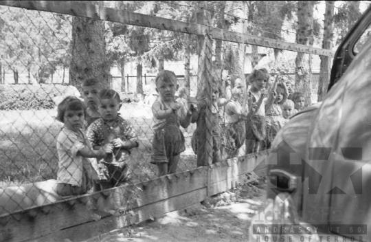 óvoda udvar kerítés gyerek Felsőnyék Tolna megye Magyarország 1970 Bakó JenőFotó részletei