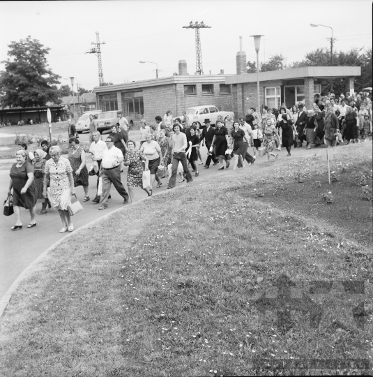 AZONOSÍTÓ: THM-BJ-00715 A rendezvény résztvevői. [A szocialista brigádmozgalom szovjet mintára az 1950-es évek végén kezdett kibontakozni Magyarországon, és rendszerváltoztatáskor szűnt meg. Kezdetben csak az ipari üzemekben és gyárakban alakultak meg a brigádok, majd az agráriumban és a hivatali szférában is létrejöttek. A mozgalom jelszava: „Szocialista módon dolgozni, tanulni és élni” volt.] HELYSZÍN: Szekszárd, Tolna megye DÁTUM: 1977 FOTÓS: Bakó Jenő