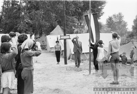 ifjúsági mozgalmi élet nyaralás úttörőtábor sátor zászló Fonyód Somogy megye Magyarország 1962 Bakó JenőFotó részletei