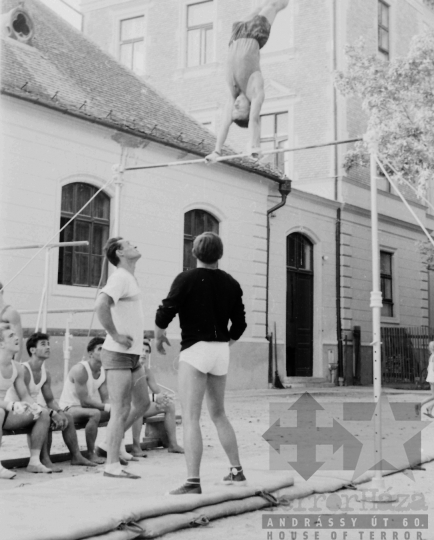 AZONOSÍTÓ: THM-BJ-00717 Férfi beszédet mond - transzparensen felirat: "Munkánk minőségének és hatékonyságának javításával, többletvállalásokkal készülünk a NAGY OKT. SZOC. FORR. 60. évfordulójára". [Az októberi orosz forradalom (kommunista propagandában: nagy októberi szocialista forradalom) 1917. november 6–12. (október 24–30.) között zajlott, amelynek során a bolsevikok a Téli Palota ostroma után az ott székelő Ideiglenes Kormány tagjait letartóztatták, és Lenin vezetésével, akit a Népbiztosok Tanácsa elnökévé választottak, puccsal átvették a hatalmat. Hazánkban ez a nap 1950-től 1989-ig pártállami ünnep volt.] [A szocialista brigádmozgalom szovjet mintára az 1950-es évek végén kezdett kibontakozni Magyarországon, és rendszerváltoztatáskor szűnt meg. Kezdetben csak az ipari üzemekben és gyárakban alakultak meg a brigádok, majd az agráriumban és a hivatali szférában is létrejöttek. A mozgalom jelszava: „Szocialista módon dolgozni, tanulni és élni” volt.] HELYSZÍN: Szekszárd, Tolna megye DÁTUM: 1977 FOTÓS: Bakó Jenő