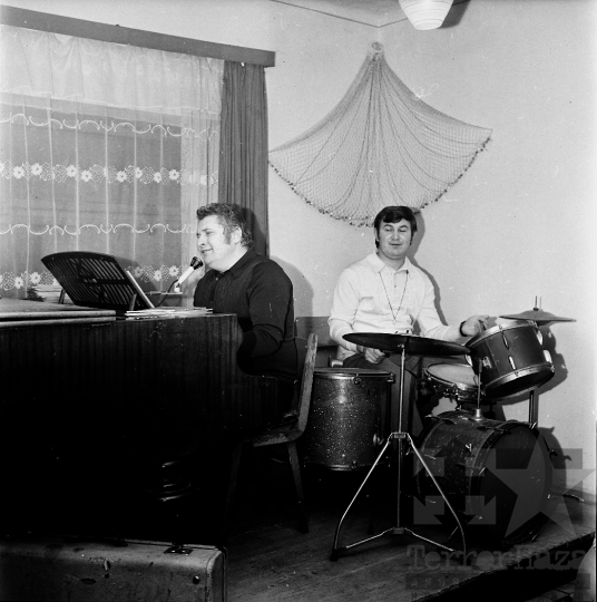 halászcsárda zenész dob zongora mikrofon Szekszárd Tolna megye Magyarország 1976 Bakó JenőFotó részletei